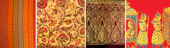 Distinct is the patola double Ikat fabric from Gujarat. Jewels, animals, dancers and flowers are interwoven with geometric frames in highly-prized saris taking a month each to complete. Exported to Indonesia, it is honoured there as the cloth of the royal court.