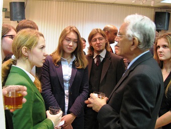 A group of students and faculty members from the Institute for International Relations and World History of Lobachevsky State University and from the International Affairs Department and the Translation and Interpretation Department of the Linguistics University of Nizhny Novgorod paid a visit to the Embassy on 21 November 2014. Representatives of the Russian Ministry of Foreign Affairs’ office in Nizhny Novgorod accompanied the group.The group called on the Ambassador, Mr. P.S. Raghavan and the Deputy Chief of Mission (DCM), Mr. Sandeep Arya. The group visited various Wings of the Embassy to get acquainted with the functioning of the Embassy. A reception was hosted in their honour.