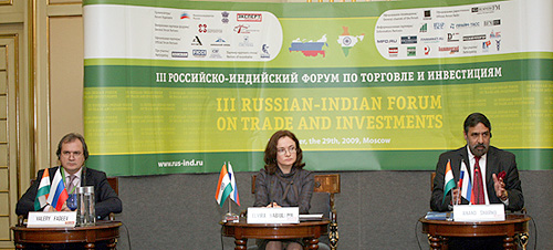 Shri Sharma also held bilateral meetings with Minister for Economic development Ms E Nabiullina, and launched the third India-Russia Forum on trade and investment. The forum was also addressed by Deputy Prime Minister of Russia Alexander Zhukov and attended by over 300 delegates from Indian and Russian industry. During the delegation level talks with his counterpart, Shri Sharma impressed upon the need to diversify bilateral trade and move away from just commodity trading to high-level investments in identified sectors. The priority sectors that were mutually identified include Pharmaceuticals, Energy (including nuclear energy), IT, High technology cooperation, agro processing and gems and jewelry. The two ministers agreed that the bilateral trade between the two countries needs to have an ambitious agenda, given the strategic nature of bilateral engagement and set a target of $ 15 billion by 2012.