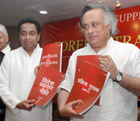 The Union Minister for Commerce & Industry, Shri Kamal Nath and Ministers of State for Commerce, and Shri Jairam Ramesh releasing a book titled ‘Foreign Trade Policy’ |