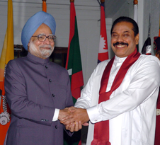 The Prime Minister, Dr. Manmohan Singh meeting with the President of Sri Lanka, Mr. Mahinda Rajapaksa, on the sidelines of 15th SAARC Summit |