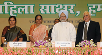The Prime Minister, Dr. Manmohan Singh, the Speaker, Lok Sabha, Smt. Meira Kumar, the Union Minister of Human Resource Development, Shri Kapil Sibal and the Minister of State of Human Resource Development, Smt. D. Purandeswari at the launch of the Saakshar Bharat Mission for Female Literacy on International Literacy Day, in New Delhi |
