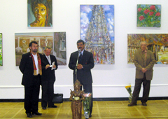 An exhibition of paintings, installations and sculptures by honoured artist of the Russian Federation, Karakhan Seferbekov, titled “Love and mercy will save the world”, was held at the Central House of Artists, Moscow from 5 June to 21 June 2009. The exhibition was co-organized by JNCC and the International Confederation of Union of Artists, Moscow. JNCC Kathak students also presented a brief programme on the occasion. |