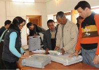 The Polling Officials collecting the EVM and other related materials for the use in the 5th phase of General Election-2009 from one of the distribution centre at Leh, Ladhakh