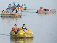 Another tourist attraction in Chandigarh is the Sukhna Lake spread over an area of 3 sq. km in sector 6. The waters of a seasonal rivulet that ran through the city were impounded to create the Sukhna Lake. Migratory birds arrive here from Siberia during the winter. A love for the lake draws many volunteers to desilt it just before the monsoon rains set in. While the lake promenade is a place for peace and tranquillity, the area just at the entrance has been developed for children to enjoy themselves.