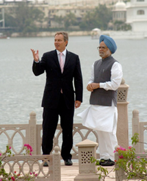 The Prime Minister, Dr. Manmohan Singh and the Prime Minister of United Kingdom, Mr. Tony Blair enjoying the beauty of pichola lake, in Udaipur (Rajasthan)