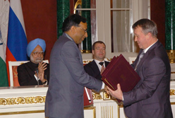 Prime Minister Manmohan Singh said, “Today we have signed an agreement that broadens the reach of our cooperation beyond supplies of nuclear reactors to areas of research and development and a whole range of areas in nuclear energy.” He added, “India accords the highest priority to its relations with Russia. This is a relationship that stands on its own footing and is not influenced by our relations with any other country.”