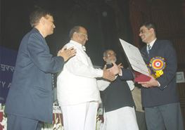 The Union Minister for Agriculture, Consumers Affairs, Food & Public Distribution, Shri Sharad Pawar presenting the Rajiv Gandhi National Quality Award to a winner, instituted by the Bureau of Indian Standards in 1991, in New Delhi on February 21, 2006. The Minister of State for Agriculture, Shri Taslimuddin is also seen.