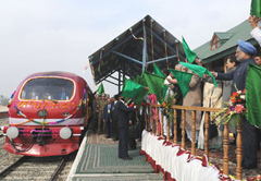 The Prime Minister, Dr. Manmohan Singh flagging off the first DEMU train at the Anantnag-Qazigund Rail Link, at Anantnag, in Jammu & Kashmir on October 28, 2009.