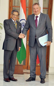 DPM Rogozin visited India on 13-15 October 2012. He was accompanied by senior officials of the Russian Government and more than 80 business representatives. During his visit, DPM Rogozin called on the Prime Minister. He also co-chaired the 6th India-Russia Forum for Trade and Investments (Oct 15, New Delhi), an active B2B forum between the two countries, along with the Indian Co-chair, the Commerce, Industries and Textiles Minister H.E. Shri Anand Sharma.
