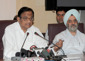 The Union Finance Minister, Shri P. Chidambaram addressing a Press Conference, in New Delhi on October 29, 2012. The Finance Secretary, Shri R.S. Gujral is also seen.