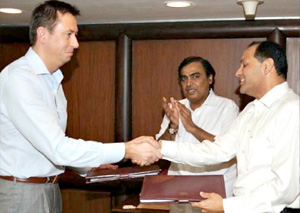 Dmitry Konov, President, SIBUR, Mukesh D. Ambani, CMD, Reliance Industries Ltd and Nikhil R. Meswani, Executive Director, Reliance Industries Ltd.